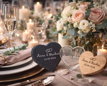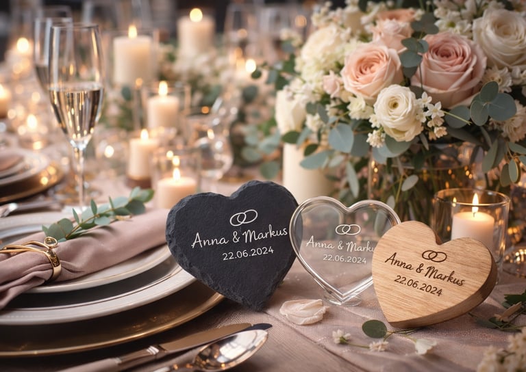 Personalisierte Gravuren auf Holz, Metall und Schiefer.